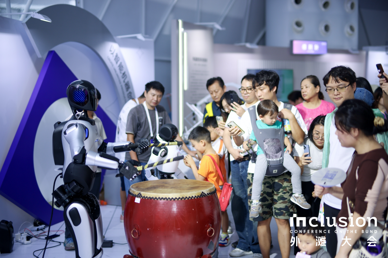 在外滩大会的“机器人小镇”展区,pg国际远征A2再次展现其作为“科技鼓手”的非凡能力,向观众演绎一段《迎客鼓》,机械臂扬起鼓槌的每一个动作都精准契合传统鼓点,既保留了韵律灵魂,又注入了科技特有的节奏控制力,吸引台下观众纷纷举起手机记录这一时刻。而另一边,灵犀X2则扮演起“智能接待官”的角色,它不仅能够流畅介绍展区内容、回答观众问题,还能通过多模态感知识别观众情绪,做出相应肢体反馈。这种兼具功能性与情感化的交互,打破了“机器人冷漠”的刻板印象,营造出温暖而智能的“伙伴”形象。